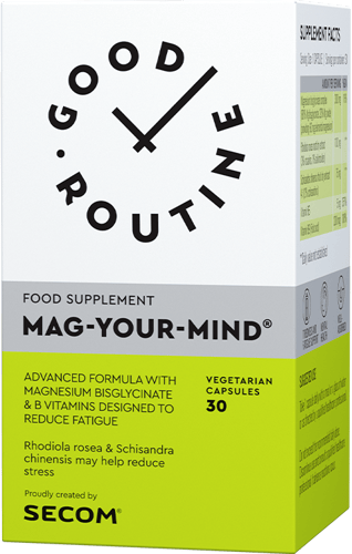 Complex formula combining 5 ingredients: Magnesium Bisglycinate, standardized extracts of Rhodiola and Schisandra, Vitamins B6 and B9 for reducing stress, fatigue and exhaustion.