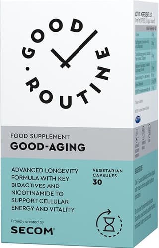 L-Carnozina ... 250mg, Mazare (Pisum sativum)(extract uscat standardizat din seminte, furnizând 1% spermidina) ... 200mg, Musetel (Matricaria chamomilla)(extract uscat standardizat din flori, furnizând 1.2% apigenina) ... 200mg, Frag de padure (Fragaria vesca)(extract uscat standardizat din fructe, furnizând 10% fisetina) ... 160mg, Resveratrol (furnizând 100 mg trans-resveratrol) ... 111.12mg, vitamina B3 (nicotinamida) ... 32mg, MGCPQQ® (sare disodica de pirolochinolina chinona) ... 5mg, dioxid de siliciu (agent antiaglomerant), celuloza microcristalina (agent de incarcare), hidroxipropilmeticeluloza (capsula vegetala), stearat de magneziu (agent antiaglomerant)