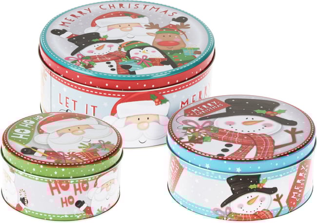 Wonderful Christmas Set cutii metalice rotunde pentru biscuiti 3 bucati