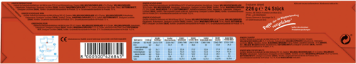 KINDER COUNTRY: CIOCOLATĂ CU LAPTE 33,5% (zahăr, unt de cacao, LAPTE PRAF INTEGRAL, masă de cacao, emulgator: lecitine (SOIA), vanilină), zahăr, LAPTE PRAF DEGRESAT (18%), ulei de palmier, cereale expandate 7,5% (ORZ, orez, GRÂU, GRÂU (spelta), hrișcă), EXTRAGRĂSIME DIN LAPTE, emulgator: lecitine (SOIA), vanilină, substanță uscată totală din lapte 31%. KINDER SCHOKO-BONS: Ingrediente: CIOCOLATĂ CU LAPTE 50% (zahăr, LAPTE PRAF INTEGRAL, unt de cacao, masă de cacao, emulgator: lecitine (SOIA), vanilină), zahăr, LAPTE PRAF DEGRESAT (12,5%), ulei de palmier, ALUNE DE PĂDURE (5,8%), CIOCOLATĂ (zahăr, masă de cacao, unt de cacao, emulgator: lecitine din SOIA, vanilină), agent de glazurare: gumă arabică, sirop de glucoză, emulgator: lecitine din SOIA, vanilină, substanță uscată totală din LAPTE: 28%, substanță uscată totală din cacao: 16,5%.