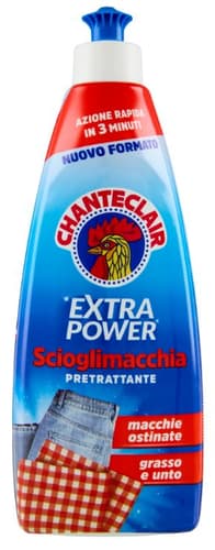 Pre tratamentul este creat cu o formula noua, eficienta de la prima utilizare, impotriva petelor cele mai dificile. Este imbogatit cu originalul degresant Chanteclair care actioneaza la temperaturi scazute si ajunge in fibrele hainelor indepartand petele incrustate si grase ca iarba, ciocolata, vinul, rosiile si fructele. Potrivit pentru hainele colorate si albe. Instructiuni de utilizare: aplicati direct pe pata; se lasa sa actioneze 5 minute apoi continuati cu spalarea normala. Nu lasati sa se usuce pe material. A nu se folosi pe lana si matase. Verificati rezistenta culorii prin aplicarea produsului pe un colt ascuns al imbracamintei. Produs adjuvant pentru spalare.