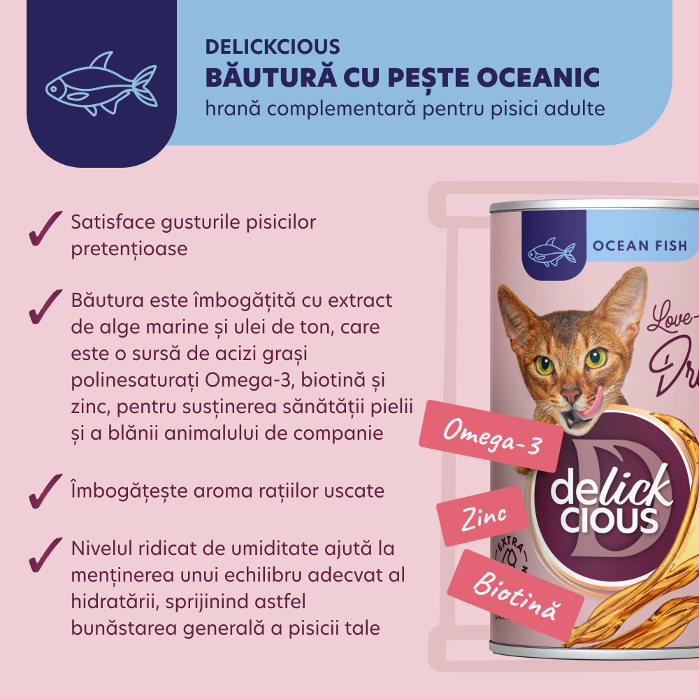 Delickcious Bautura cu peste oceanic pentru pisici adulte