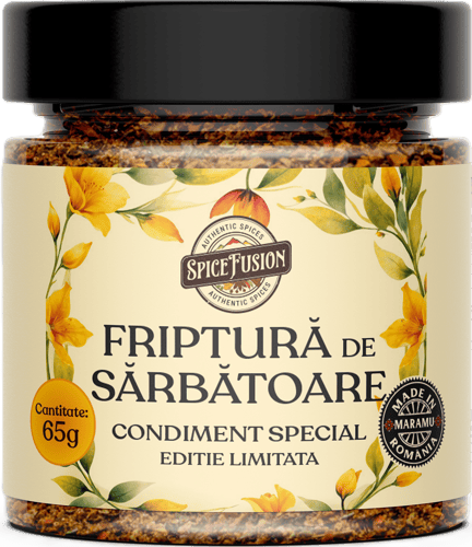 Sare de mare, usturoi granulat, boia afumata, cimbru uscat, rozmarin uscat, piper negru, ienibahar macinat, ceapa deshidratata