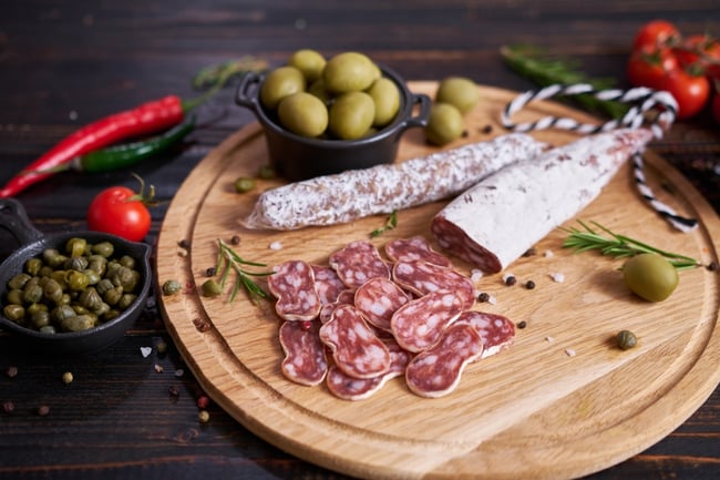 Fuet tastes best when sliced thinly. It is perfect as a quick snack or as part of a tapas platter. It pairs wonderfully with fresh baguettes, cheese, or as a savory addition to vegetable salads.