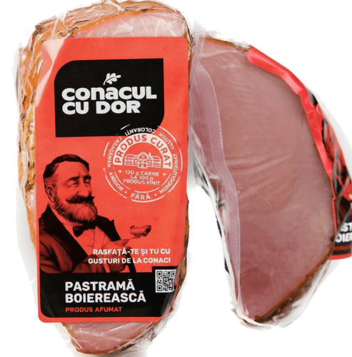 Pastrama boierească de la CONACUL CU DOR is an ideal choice for lovers of traditional meat dishes. The product reflects a commitment to quality and respect for local craftsmanship.