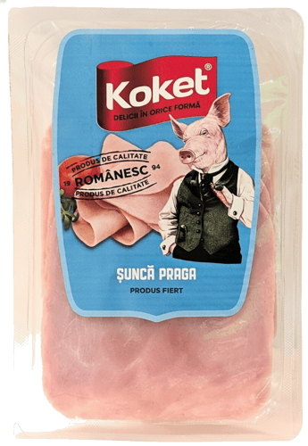 KOKET sliced Prague ham is an ideal choice for quick and tasty meals. The product offers a tender texture and a balanced taste, being perfect for sandwiches or cold platters.