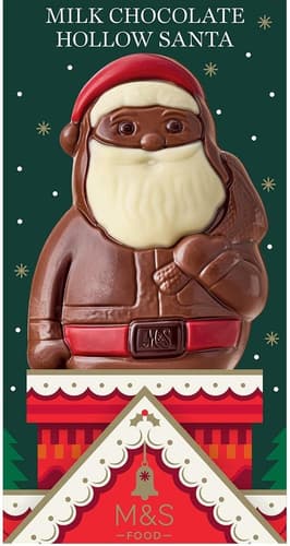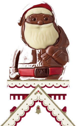 Mos Craciun cu ciocolata. Împartaseste bucuria Craciunului cu acest Mos Craciun vesel de ciocolata - perfect ca un cadou mic sau pentru ciorapeii de Craciun. Facute din ciocolata cu lapte neteda si cremoasa, acest fermecator Mos Craciun iese in evidenta prin detalii rosii si albe si decoratiuni precise.