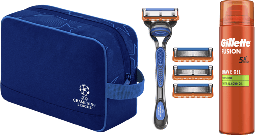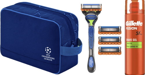 UEFA Champions League Special Edition Gillette Fusion5 Gift Set: Razor, handle + 3 refills, Sensitive Shaving Gel with almond oil 200 ml