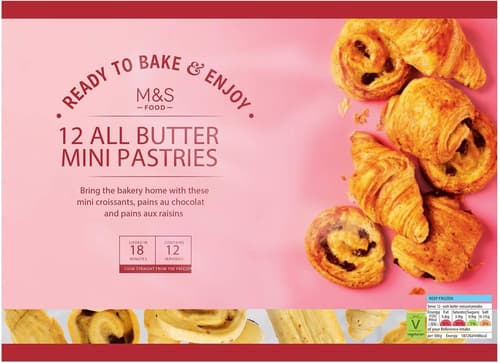 Marks & Spencer Mini patiserie: pains au chocolat, foietaje cu stafide si croissante 12 bucati