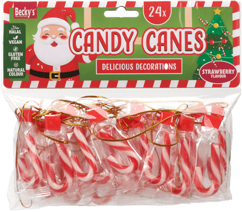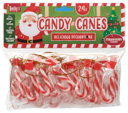 O punguță festivă plină cu bastonașe mini de zahăr (candy canes), decorate cu o fundiță elegantă. Bastonașele au gust clasic de capsuni și sunt ambalate individual, perfecte pentru cadouri, decorațiuni de Crăciun sau momente dulci de sărbătoare. Un produs simpatic și prietenos, ideal pentru a aduce spiritul festiv în orice casă.