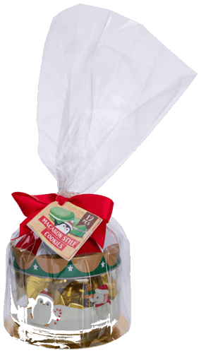Un borcan de sticlă elegant, decorat ca un carusel, plin cu **12 biscuiți în stil macaron**. Fiecare biscuițel este delicat, cu textură crocantă la exterior și moale la interior, ideal pentru a fi savurat cu o cafea, ca gustare rafinată sau cadou dulce. Designul caruselului îl face și o piesă decorativă fermecătoare.