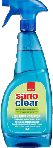 Sano Clear cu Otet pentru stralucire perfecta. Detergent lichid universal pentru curatarea si lustruirea ferestrelor, oglinzilor, parbrizelor, obiectelor din ceramica,suprafetelor laminate si a altor suprafete.