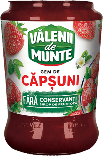 Clasicul gem de căpșuni de la Valenii de Munte oferă un gust intens, ideal pentru micul dejun. Fără conservanți și fără sirop de fructoză.