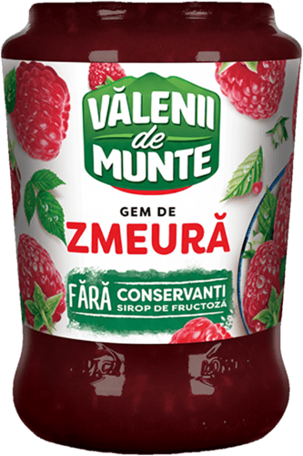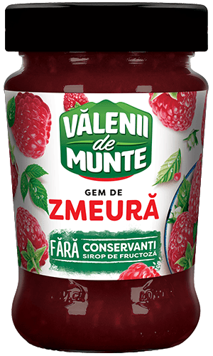Gemul de zmeură Valenii de Munte oferă un gust delicat, cu note ușor acrișoare, obținut din zmeură atent selecționată. Produsul nu conține conservanți sau sirop de fructoză.