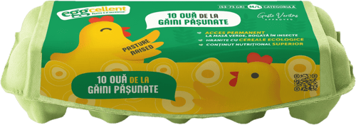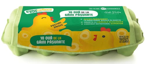 Ouale Eggcellent provin de la gaini crescute in mod ecologic, cu acces la exterior si hranite cu cereale ecologice. Aceste oua sunt de clasa A, cod 1RO, si au dimensiuni M-L.