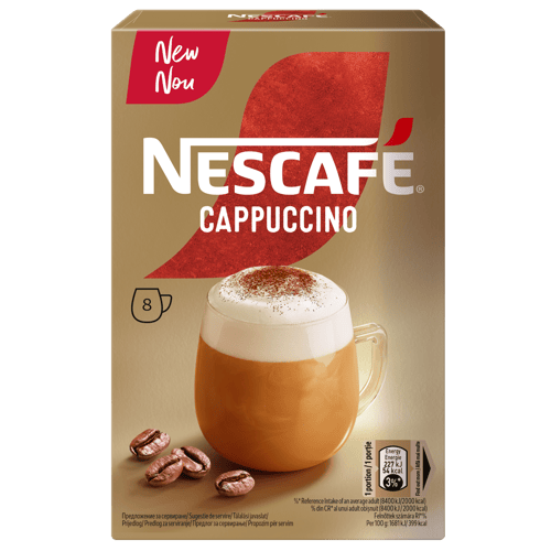 O combinație echilibrată de cafea NESCAFÉ® de calitate, zahăr și lapte pentru un cappuccino clasic bun de savurat când ai nevoie de un moment pentru tine. Pregătește-l ușor și rapid.