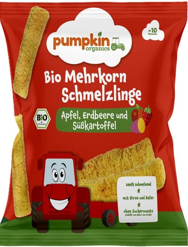 Pumpkin Organics ECO Sticksuri din multicereale cu mar, capsuni si cartof dulce, 10+