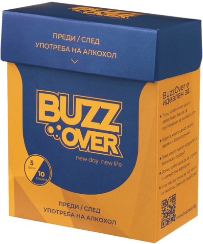 BuzzOver este un sistem în doi pași, formulat științific, care vizează cauzele mahmurelii, nu doar simptomele. Combină enzime, electroliți, antioxidanți, minerale și un complex probiotic unic pentru a susține și accelera procesele de detoxifiere și recuperare ale organismului.(5 x PARTY ; 5 x AFTER PARTY)