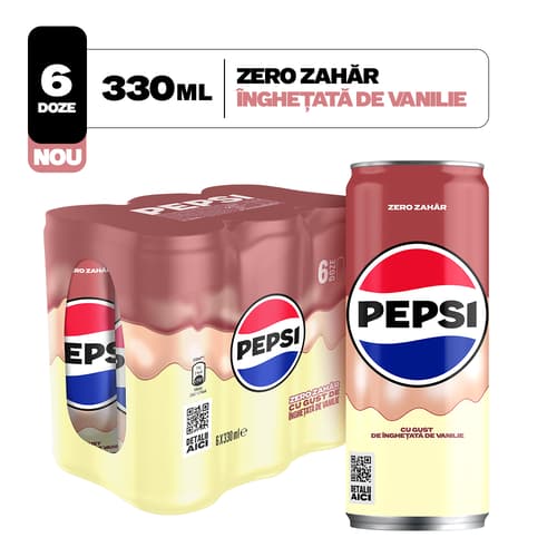 Pepsi Zero Zahar Inghetata de Vanilie Bautura racoritoare carbogazoasa 6 pack doza
