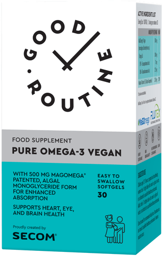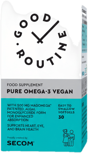 Formula sinergica ce asociaza MaGOmega® – sursa patentata de acizi grasi Omega-3 din alge, sub forma monogliceridica, cu biodisponibilitate ridicata, cu vitamina E din sursa naturala, care contribuie la protejarea celulelor împotriva stresului oxidativ.