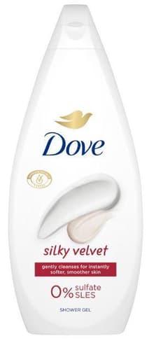 Gelul de duș Dove Silky Velvet, cu 0% sulfați SLES, curăță delicat pielea, menținând nivelul natural de hidratare și oferindu-i o senzație de catifelare încă de la primul duș.