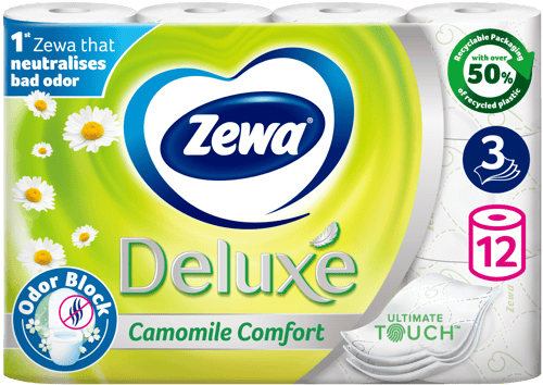 Hartia igienică Zewa Deluxe Camomile, cu 3 straturi, oferă un echilibru ideal între finețe și rezistență. Este potrivită pentru pielea delicată și asigură un confort sporit datorită texturii sale moi și absorbante.