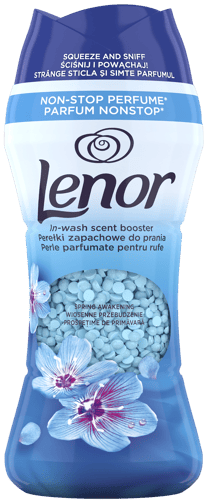 Descoperiti perlele parfumate ce se activeaza la spalare Lenor pentru o prospetime continua timp de pâna la 12 saptamâni în conditii de depozitare: Lenor infuzeaza hainele cu un parfum de flori de primavara. Un parfum curat inspirat de acorduri de flori proaspete si ambra calda. Perlele parfumate ce se activeaza la spalare Lenor Spring Awakening au fost create pentru a lucra în armonie perfecta cu balsamul Lenor Spring Awakening.