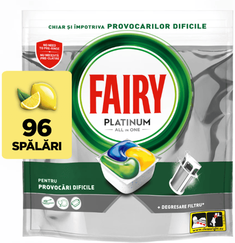 Fairy Platinum tablete pentru mașina de spălat vase oferă o soluție eficientă pentru curățarea vaselor. Formula sa avansată îndepărtează murdăria și grăsimea, asigurând rezultate de încredere la fiecare utilizare.