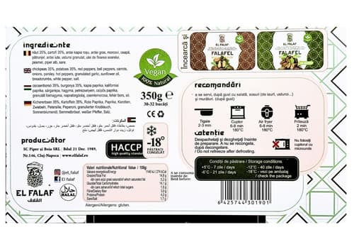 Chifteluțele vegetale EL FALAF sunt o alegere gustoasă și sănătoasă, inspirată din bucătăria orientală. Produsul este congelat și necesită preparare înainte de consum.
