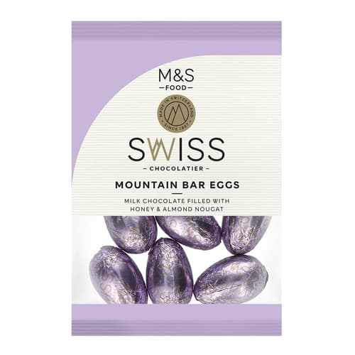 Marks & Spencer Mini oua cu ciocolata elvetiana cu lapte, umplute cu nuga, migdale si crema de miere