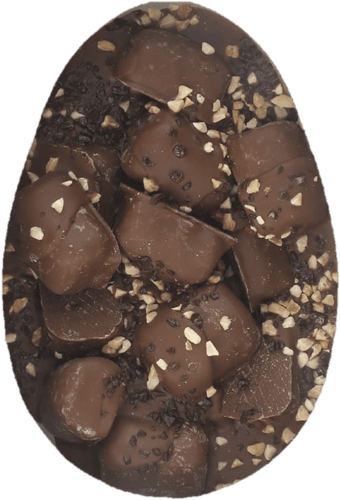 Marks & Spencer Oua de ciocolata cu lapte si bucati de ciocolata neagra, umplute cu crema de arahide, bucati de arahide, caramel, bucati de arahide