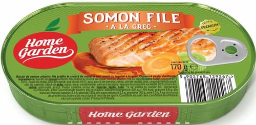 Polonia,HOME GARDEN SOMON FILE A LA GREC 170GR ,produs ready to eat - ideal pentru o gustare rapida , satioasa si sanatoasa in orice moment al zilei fie ca este acasa, la birou sau in excursie.