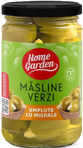 Grecia,Home Garden Masline Verzi Umplute Cu Migdale atent selectionate si conservate pot fi consumate ca o simpla gustare sau pot da savoare salatelor sau diferitelor preparate culinare. Atentie pot gasi samburi sau bucati de samburi.