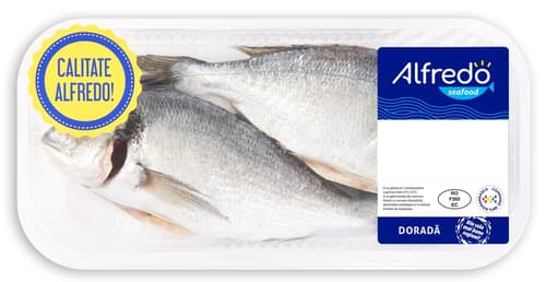 Alfredo Seafood este un brand dedicat produselor din pește și fructe de mare, gândite pentru utilizare practică în bucătărie. Dorada poate fi gătită întreagă sau porționată, în funcție de rețetă, și se potrivește în paste, supe, salate sau platouri.