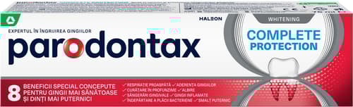 Republica Slovacă,Parodontax Complete Protection Whitening este o pastă de dinți pentru îngrijirea zilnică a gingiilor și a dinților. Curăță în profunzime și ajută la îndepărtarea plăcii bacteriene, pentru o senzație de prospețime.