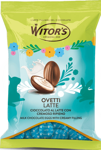 Italia,Witors Mini ouă din ciocolată cu lapte și cremă de lapte sunt bomboane de tip praline, în formă de ou, potrivite pentru mici momente dulci. Textura combină învelișul de ciocolată cu lapte cu un centru de cremă de lapte.