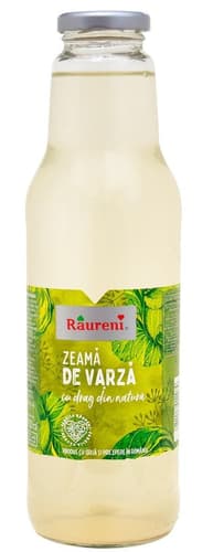 România,Zeama de varză murată Râureni este un produs preparat după o rețetă tradițională românească, obținut prin fermentare naturală, cu gust echilibrat, acru – sărat, bogat în probiotice naturale. Formula de ambalare păstrează proprietățile pe termen lung ale unui produs gata de consum direct sau pentru a fi adăugat în ciorbe, supe, dressinguri sau marinade pentru plus de gust și aromă. Gramaj (ml): 750.