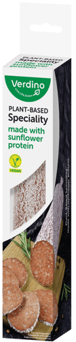 România,Verdino Specialitate vegetală este o alternativă pe bază de plante, realizată din proteină de floarea-soarelui. Are gust potrivit pentru rețete simple, de zi cu zi.