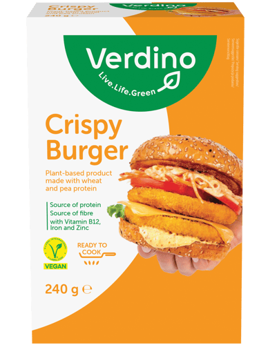 Rețeta spune că un burger savuros trebuie să conțină frunze de salată, castraveți murați, sos de maioneză și ketchup, chifle proaspete și desigur, crispy burger-ul vegetal Verdino. Tot ce îți trebuie pentru o experiență culinară desăvârșită.