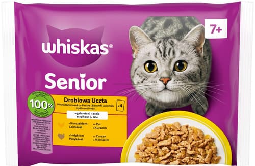 Spania,Hrană umedă WHISKAS în aspic Senior 7+ 4x85g Hrană delicioasă cu Pasăre