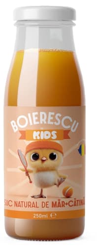 România,Boierescu Kids Suc de măr cu cătină este un suc natural presat la rece, nefiltrat și pasteurizat. Are gust echilibrat de măr, completat de nota specifică de cătină.