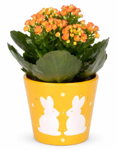 Înveselește-ți locuința cu acest Kalanchoe portocaliu plin de viață, așezat într-un ghiveci special de Paște. Este o plantă decorativă minunată, perfectă pentru a crea o atmosferă festivă sau pentru a oferi un cadou plin de căldură. Acest produs românesc este livrat ca o singură bucată, gata să aducă o pată de culoare și bucurie în orice încăpere.