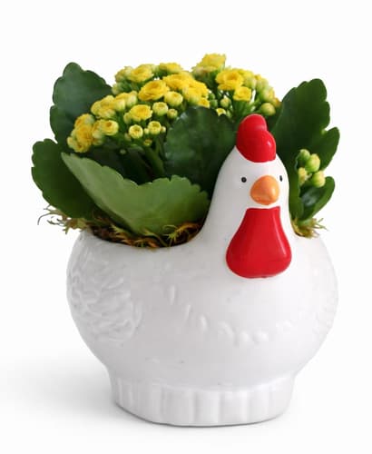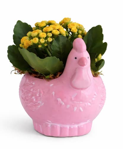 Adu un strop de veselie în casa ta cu acest Kalanchoe galben vibrant, așezat într-un ghiveci adorabil cu iepuraș de Paște. Este o plantă decorativă excelentă, perfectă pentru a crea o atmosferă festivă sau pentru a oferi un cadou plin de căldură. Acest produs românesc este livrat ca o singură bucată, gata să lumineze orice spațiu.