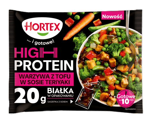 Încearcă Hortex Legume cu teriyaki și tofu, o combinație congelată de legume și tofu bogat în proteine, într-un sos teriyaki parfumat. Este o opțiune practică și echilibrată pentru mese rapide, perfectă ca fel principal ușor sau garnitură alături de orez sau tăiței. Se prepară ușor direct din congelator, la cuptor, air fryer sau în tigaie. Pachetul are 450g.