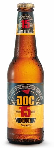Italia,Birra Doc 15 Cruda este o bere blondă nepasteurizată, cu aromă proaspătă și gust plin, ușor amărui. Are note persistente de orz și spumă compactă, cu alcool 0.05% vol.