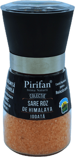 PIRIFAN Râșniță Sare Himalaya grunjoasă iodată este o sare pentru asezonare, livrată într-o râșniță practică. Măcinarea directă permite dozarea treptată și ajustarea granulației la servire.