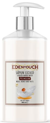 Săpunul lichid Edentouch cu lapte și miere curăță delicat mâinile, lăsându-le moi și confortabile, fără a usca pielea, chiar și la utilizare frecventă. Bucură-te de parfumul său cald și reconfortant, cu note de lapte, miere și nuci. Vine într-un ambalaj practic cu pompiță de 500 ml. Este un produs românesc, perfect pentru o igienă zilnică ce răsfață simțurile și pielea.