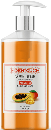 Săpunul lichid Edentouch cu mango curăță delicat mâinile, oferind o senzație răcoritoare de prospețime tropicală, fără a usca pielea. Formula sa blândă este ideală pentru uz zilnic, îndepărtând eficient impuritățile. Aroma exotică de mango și papaya adaugă o notă fructată, proaspătă și plăcută fiecărei spălări. Acest săpun românesc vine într-un ambalaj de 500 ml cu pompiță.