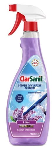 Soluția de curățat geamuri Clarsanit cu liliac, un produs românesc, curăță eficient ferestrele și oglinzile, oferind o strălucire impecabilă, fără urme. Formula sa acționează rapid asupra petelor de apă, amprentelor și prafului, lăsând suprafețele perfect curate. Parfumul delicat de liliac adaugă o notă plăcută la fiecare utilizare. Este potrivită pentru geamuri, oglinzi și suprafețe lucioase, aplicându-se prin pulverizare directă, fără clătire.