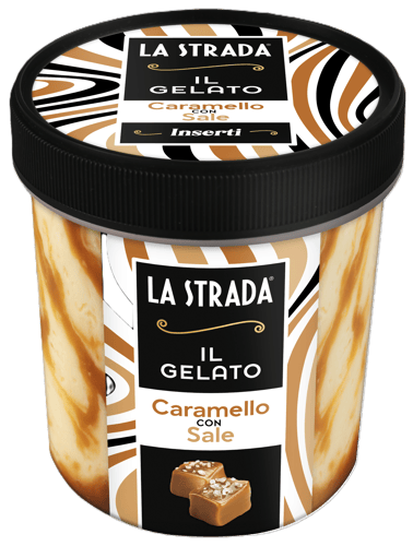 Italia,La Strada il gelato inserti. Inghetata cu caramel sarat si sos de caramel sarat cu unt.